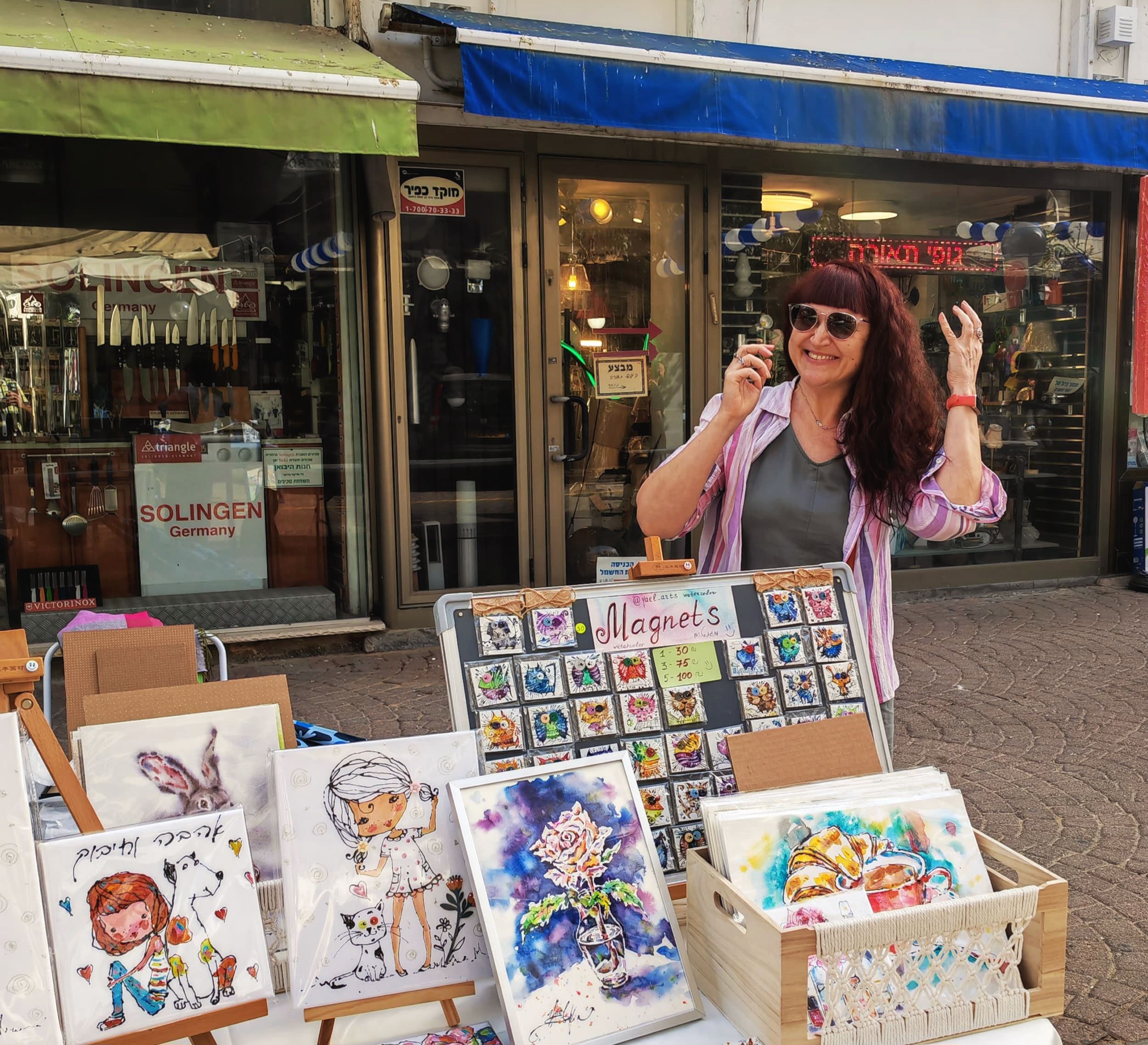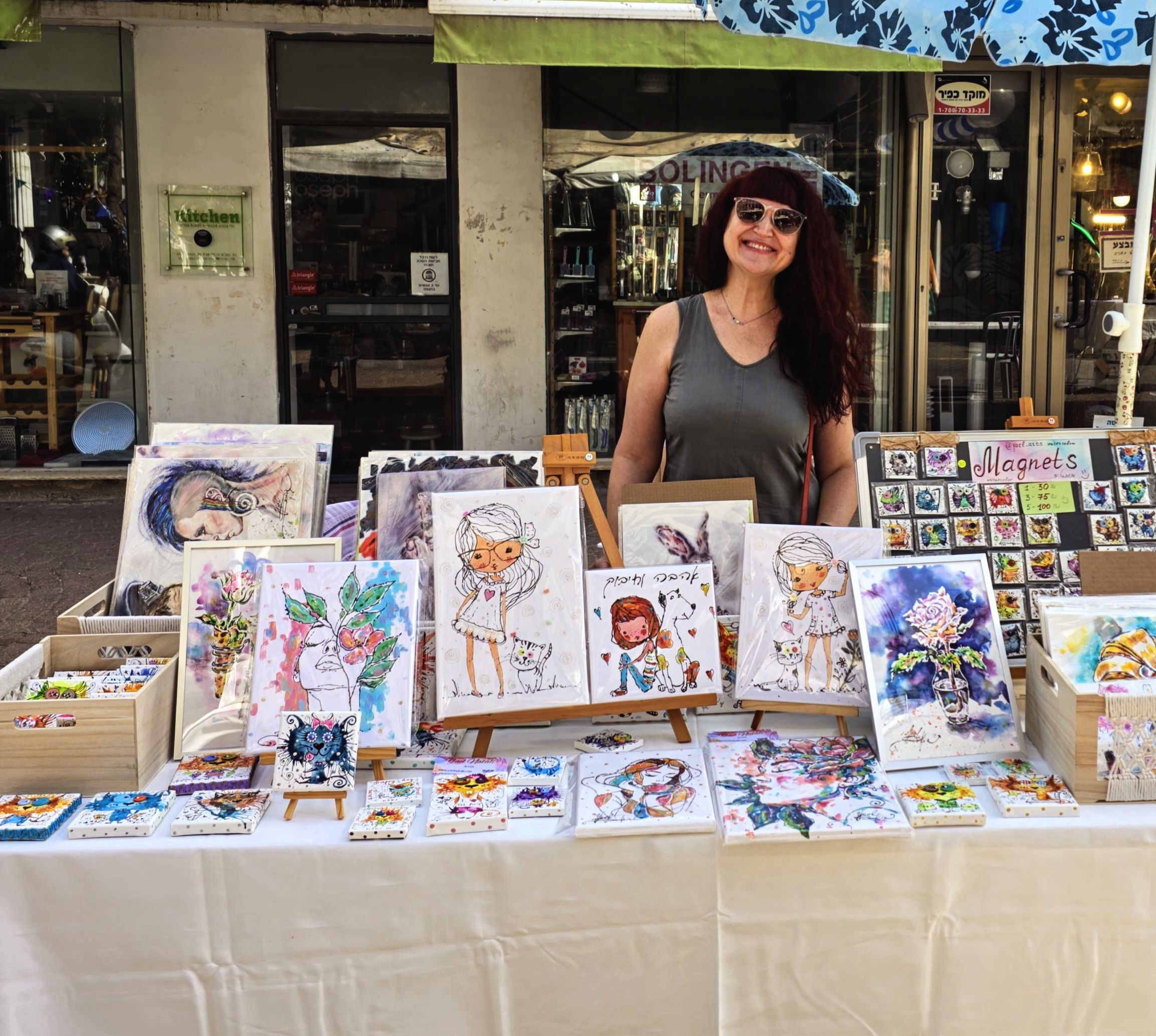 šUnder the bright Tel Aviv sky, I shared my art with the world - watercolors, oils, acrylics, and mixed media pieces, each carrying a part of my soul. People stopped, looked, smiled, asked questions. Some connected with my work, others were moved. For an artist, there’s no greater reward than seeing emotions spark in the eyes of a stranger.