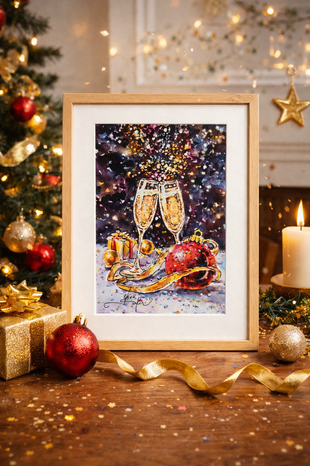 ✨Perfect for holiday home decor, dining or living room interiors, or as a thoughtful gift for lovers of original art, celebrations, and elegant festive themes.