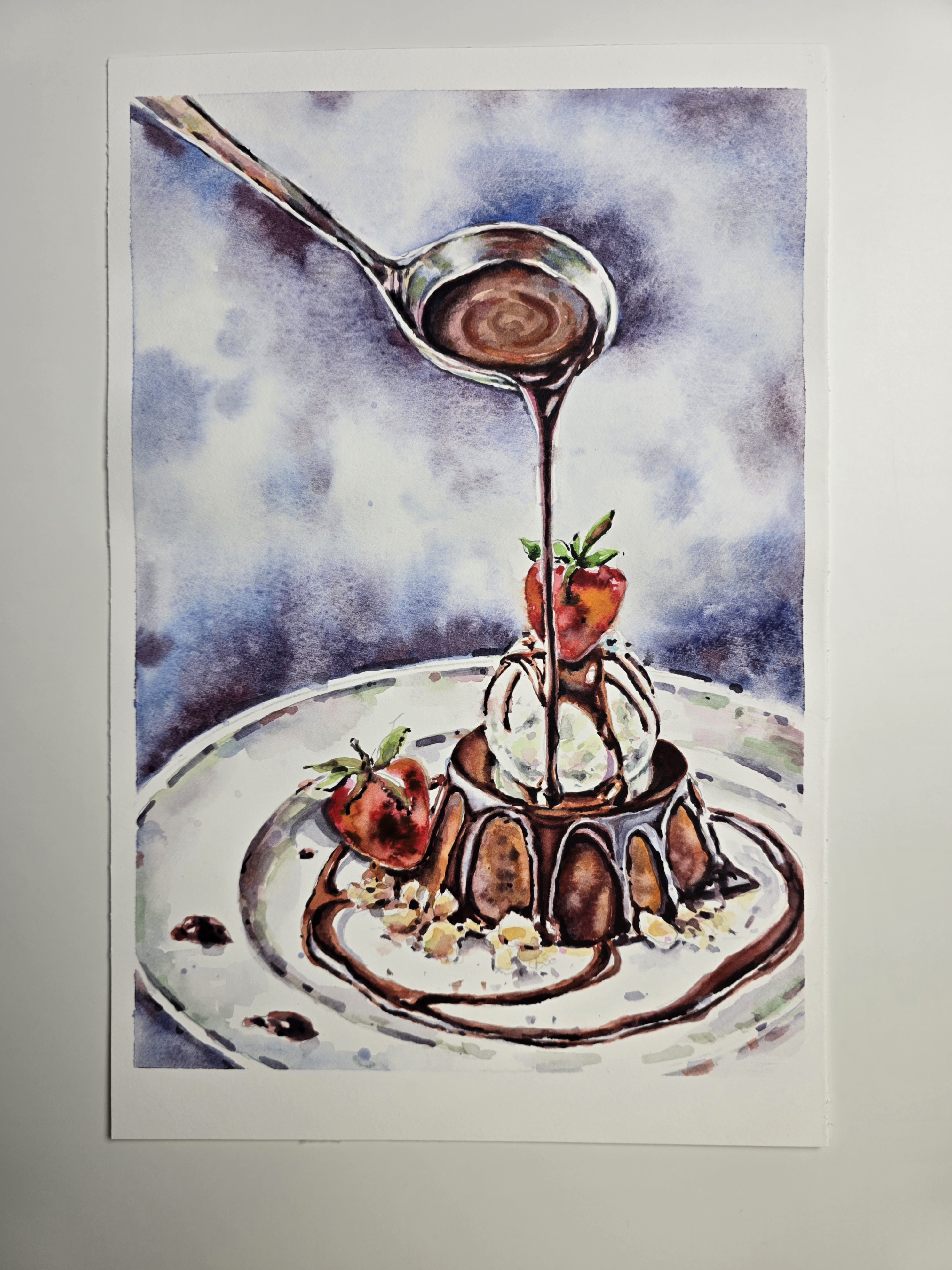 🎨This is an original watercolor painting celebrating the beauty of indulgence and quiet pleasure.