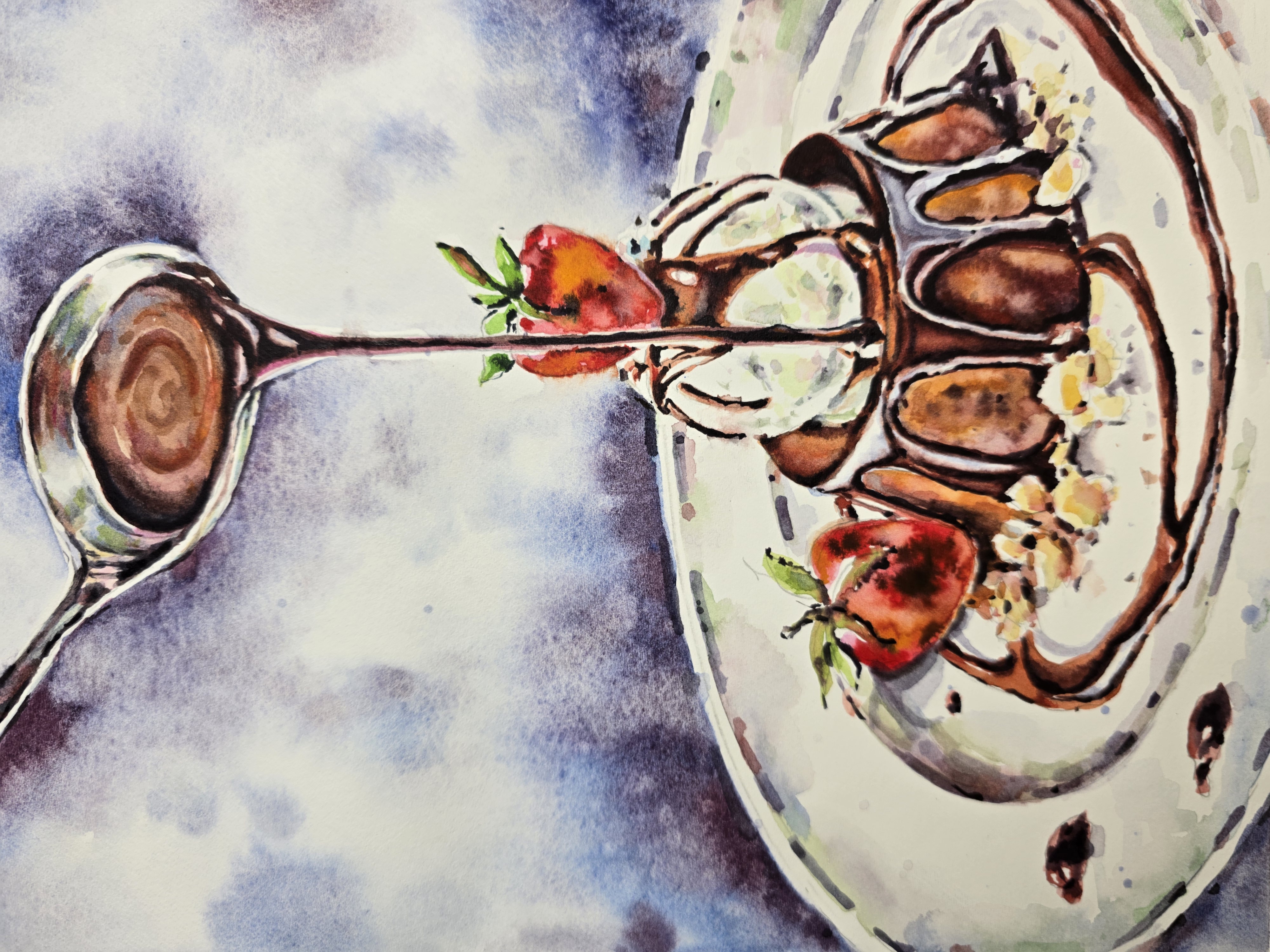 🍰This painting is about taste, pleasure, and slowing down, where food becomes a small ritual and a source of joy.