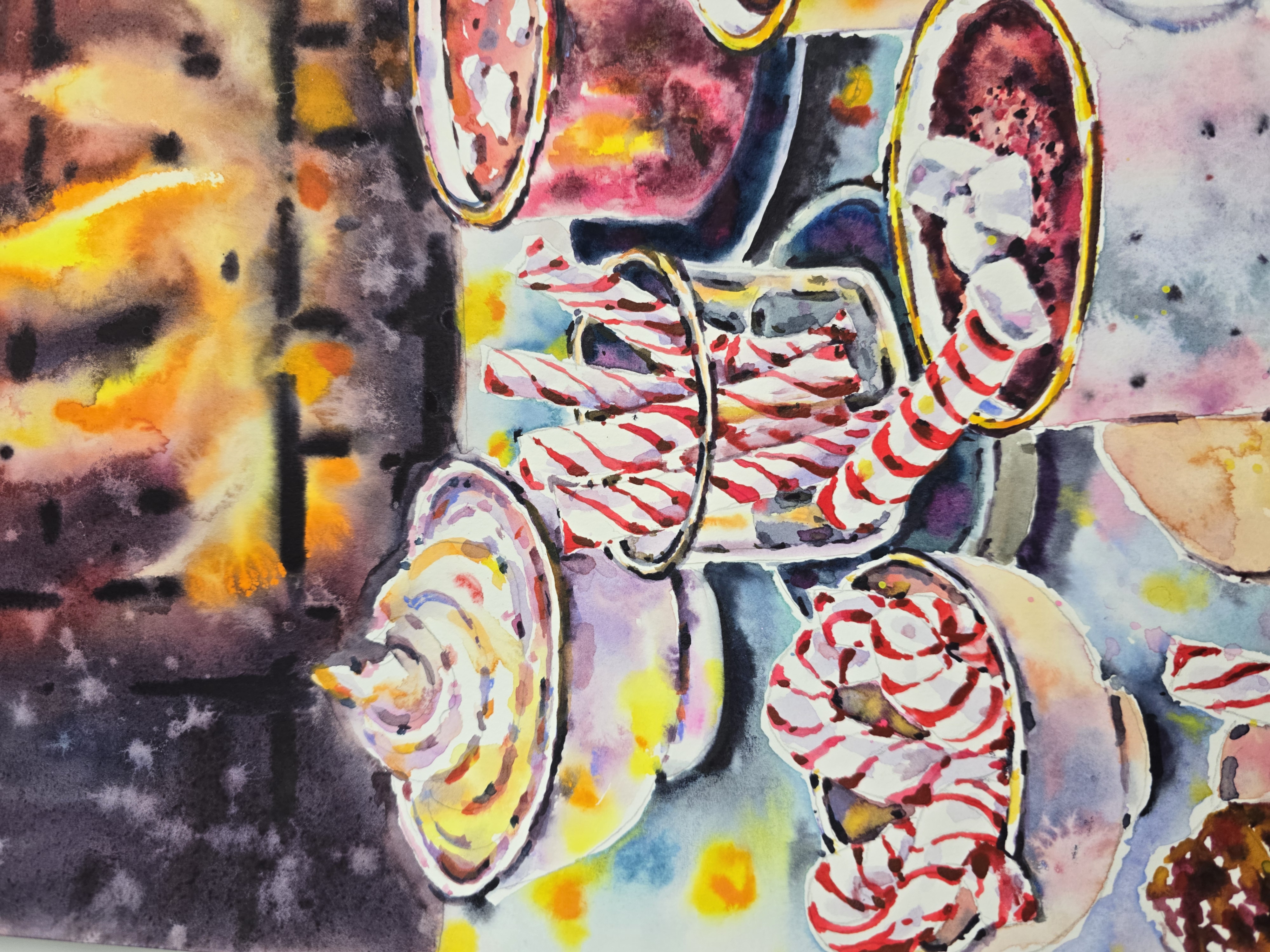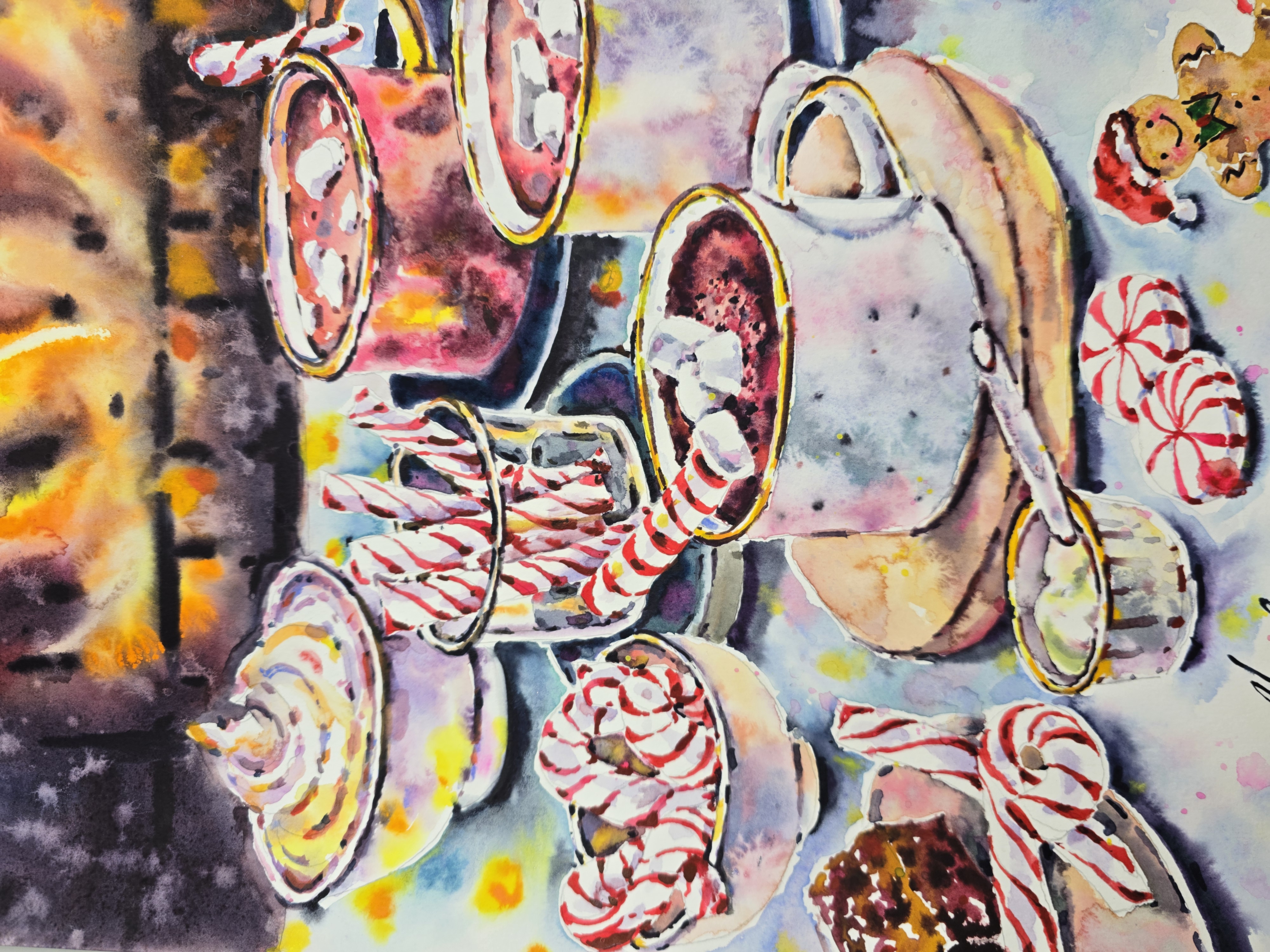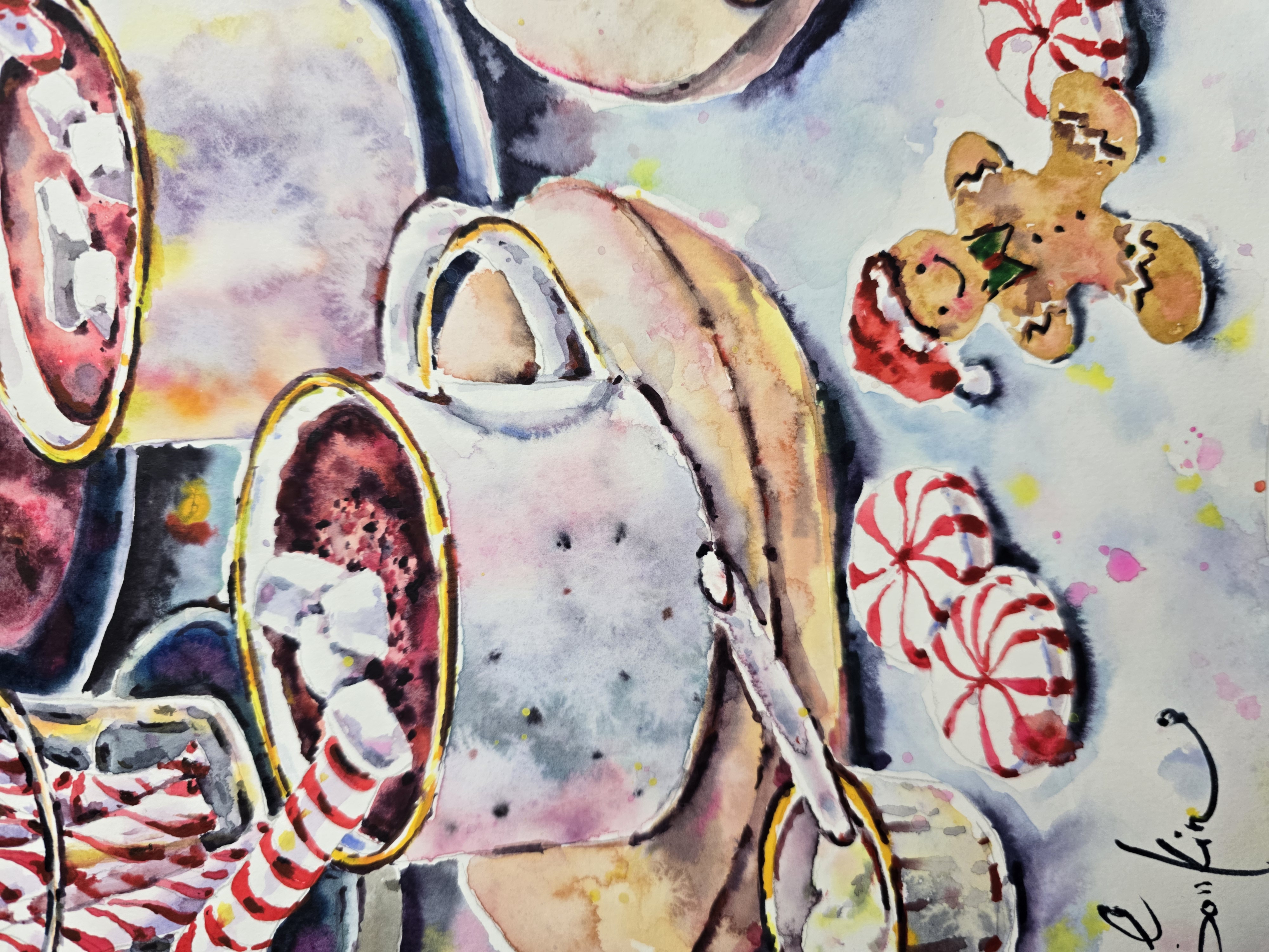 🖌️Painted in a loose, expressive watercolor style, this artwork combines rich festive colors with playful details and spontaneous brushstrokes. The composition celebrates simple winter joys - hot drinks, sweets, and the peaceful atmosphere of Christmas evenings at home.