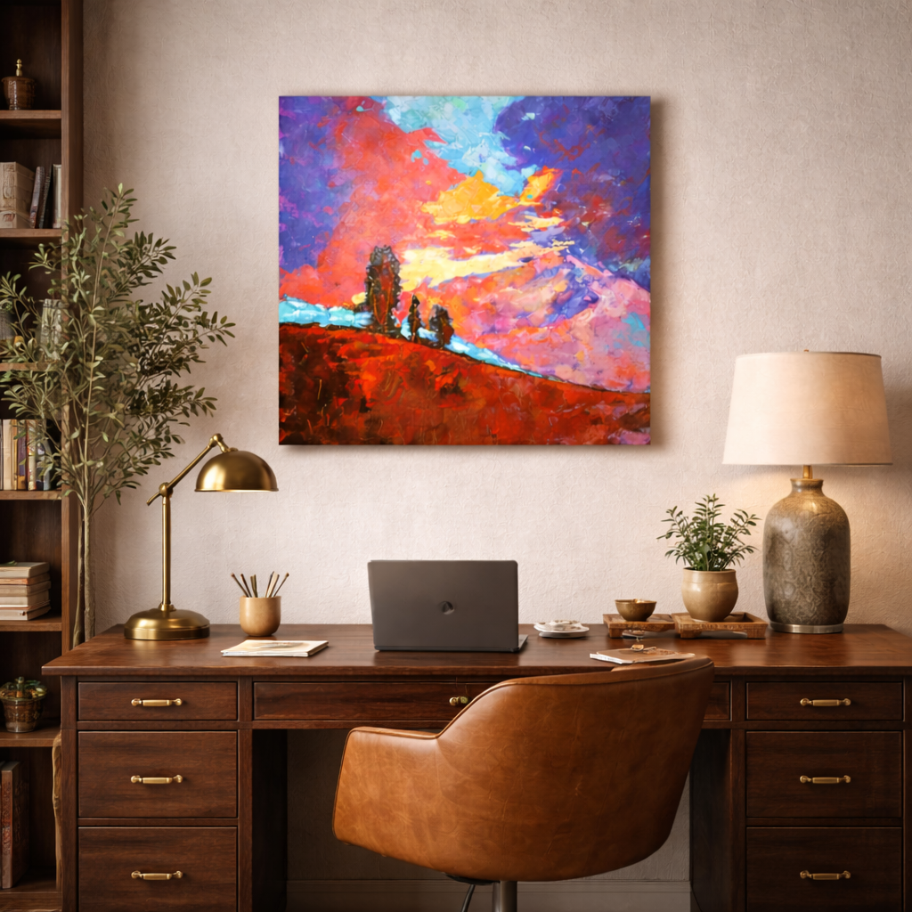 Abstract Sunset Landscape Wall Art - Original Impasto Oil Painting on Canvas