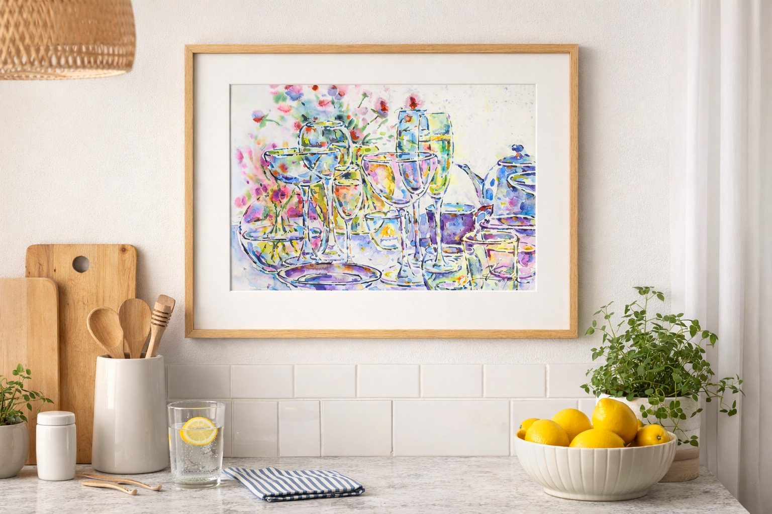 🎨This original watercolor painting is a vibrant still life artwork featuring elegant glassware and delicate flowers. Painted with expressive colors and lively brushstrokes, it brings a sense of freshness, light, and beauty into any space🌸