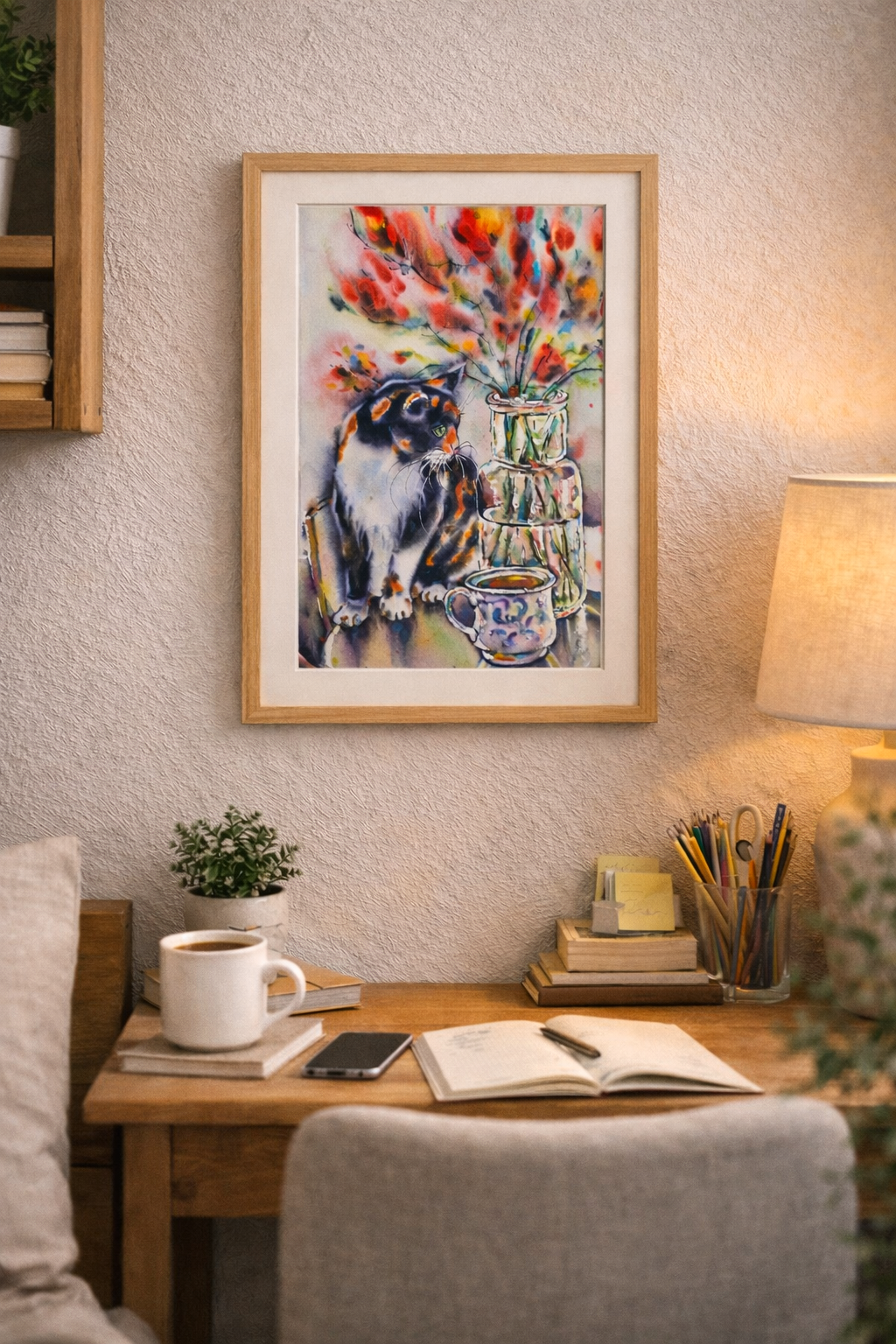 🐈Perfect as cozy wall art for a kitchen, dining room, or living space, this painting also makes a thoughtful gift for cat lovers and admirers of still life art.