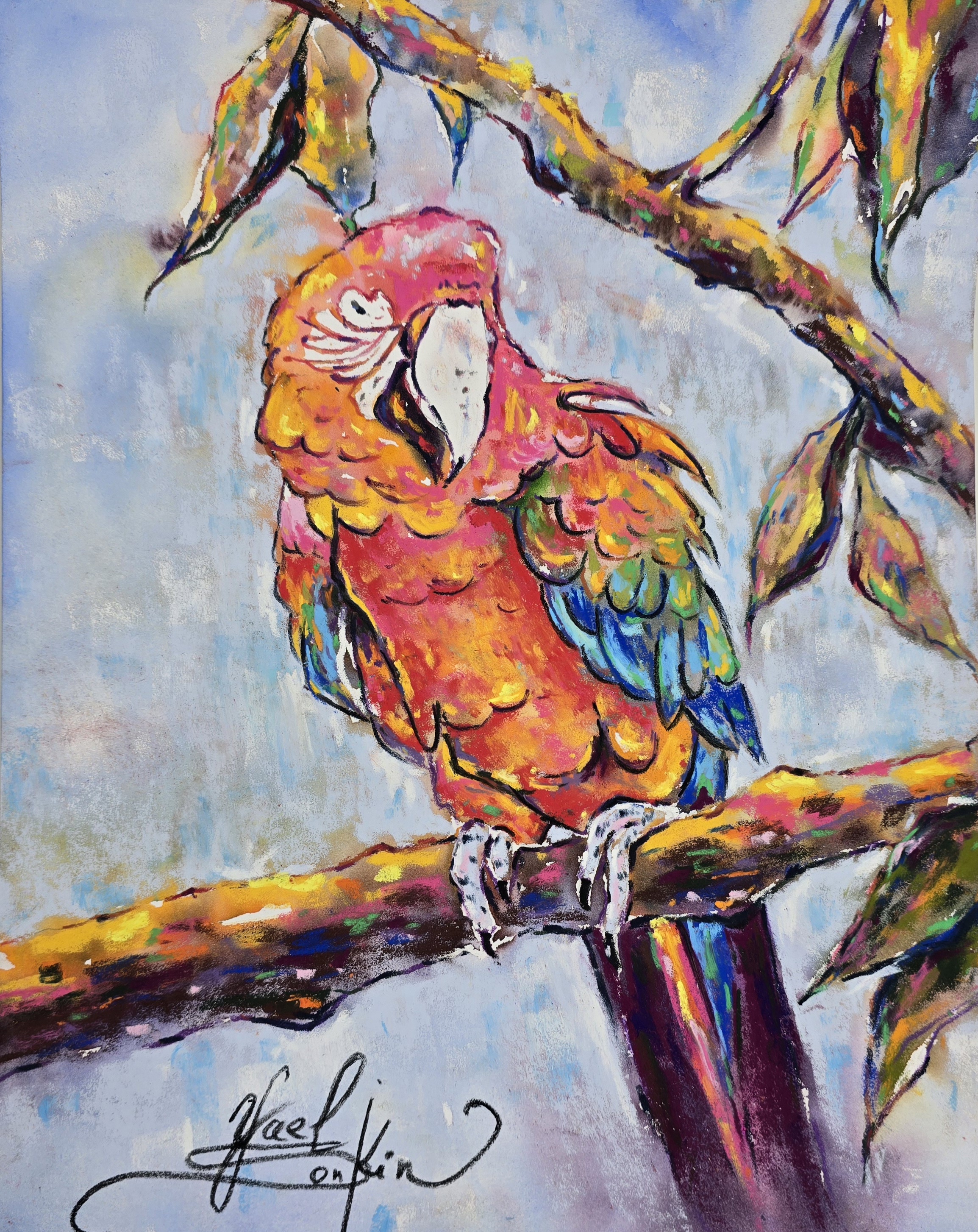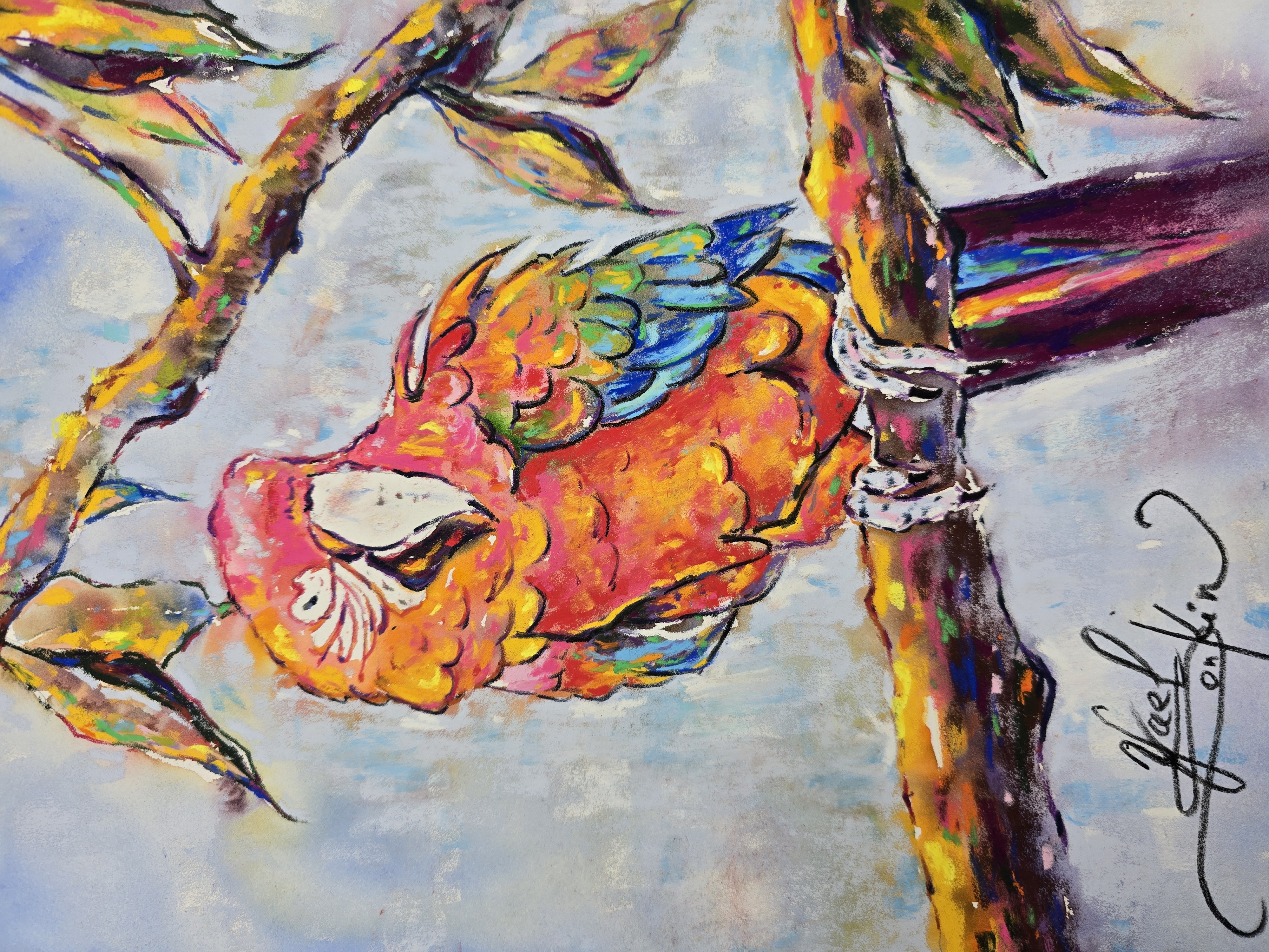 Colorful Parrot Artwork, Original Mixed Media Painting, Tropical Bird Art, Macaw Artwork, Vibrant Wildlife Wall Decor, Original Watercolor Painting, Original Soft Pastel Art