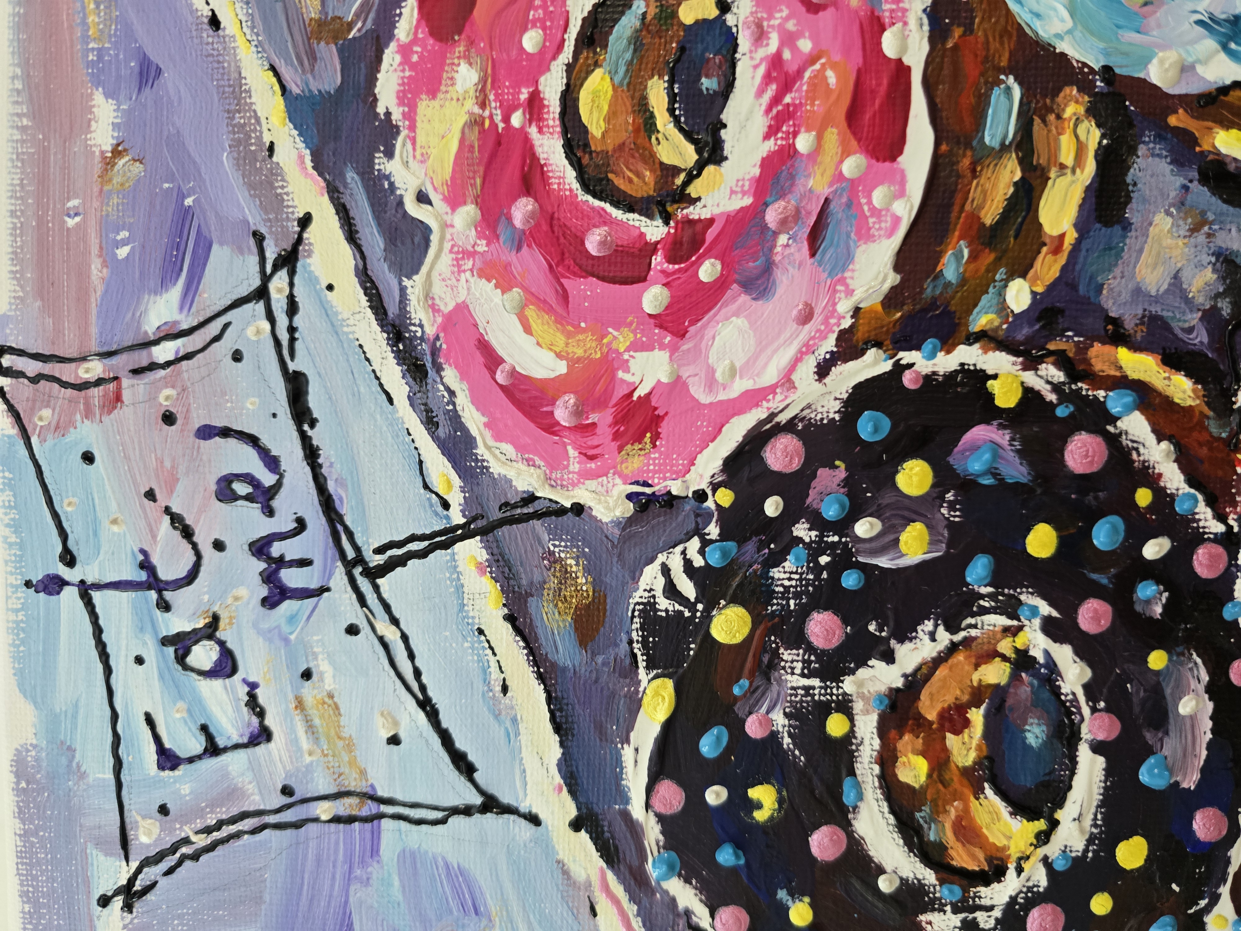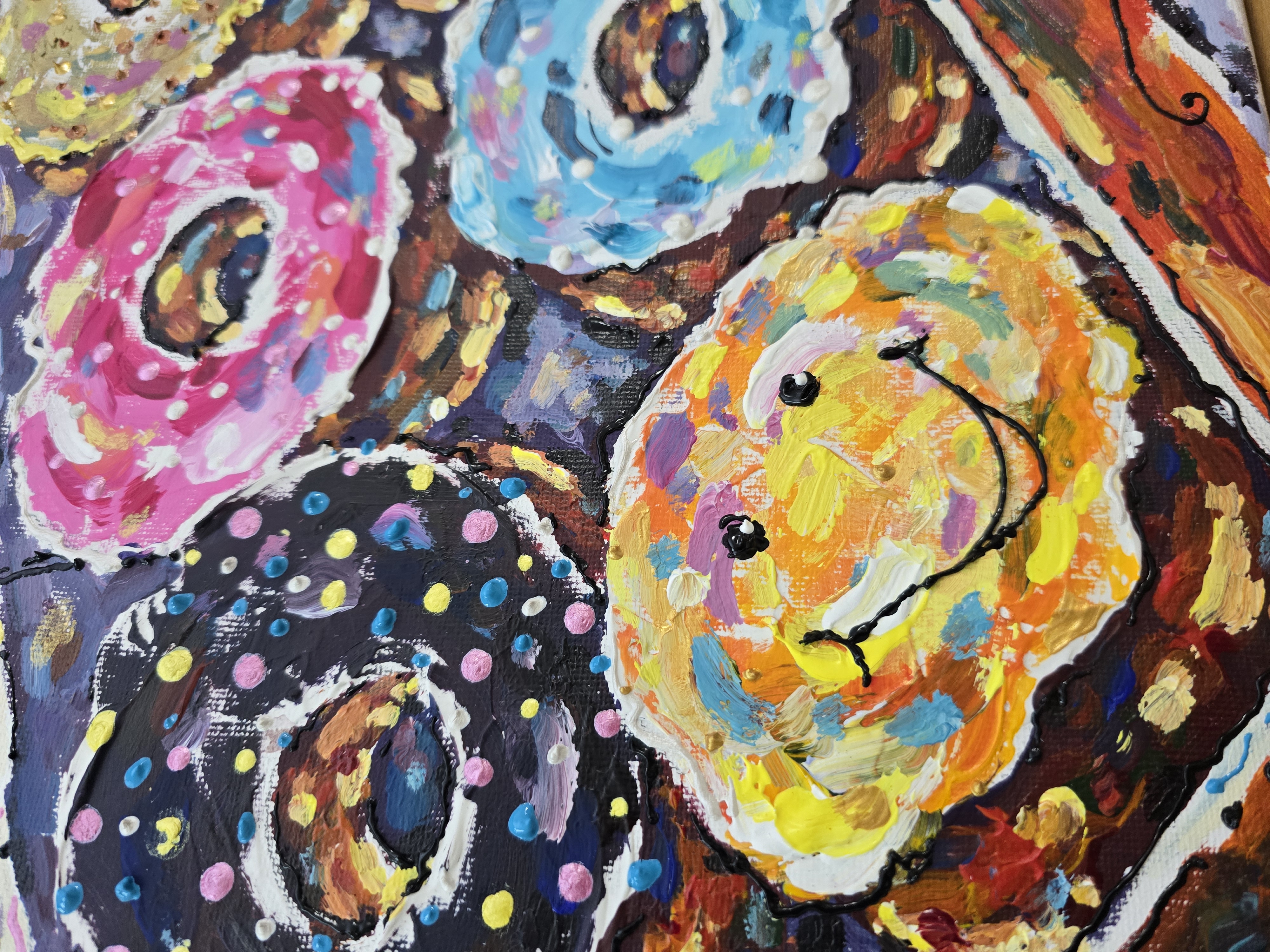 Original Donuts Painting on Canvas - Colorful Mixed Media Wall Art, Textured Acrylic Artwork