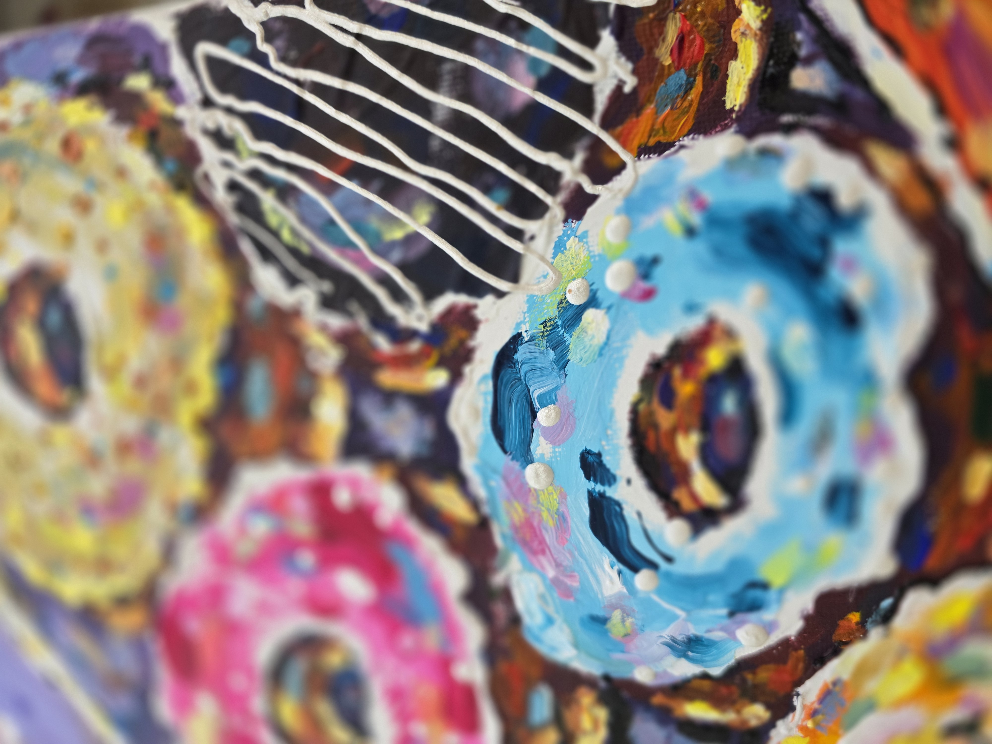 🖌️Created on canvas using mixed media technique – texture paste, acrylic paints, and decorative contours – it radiates energy, fun, and sweetness.