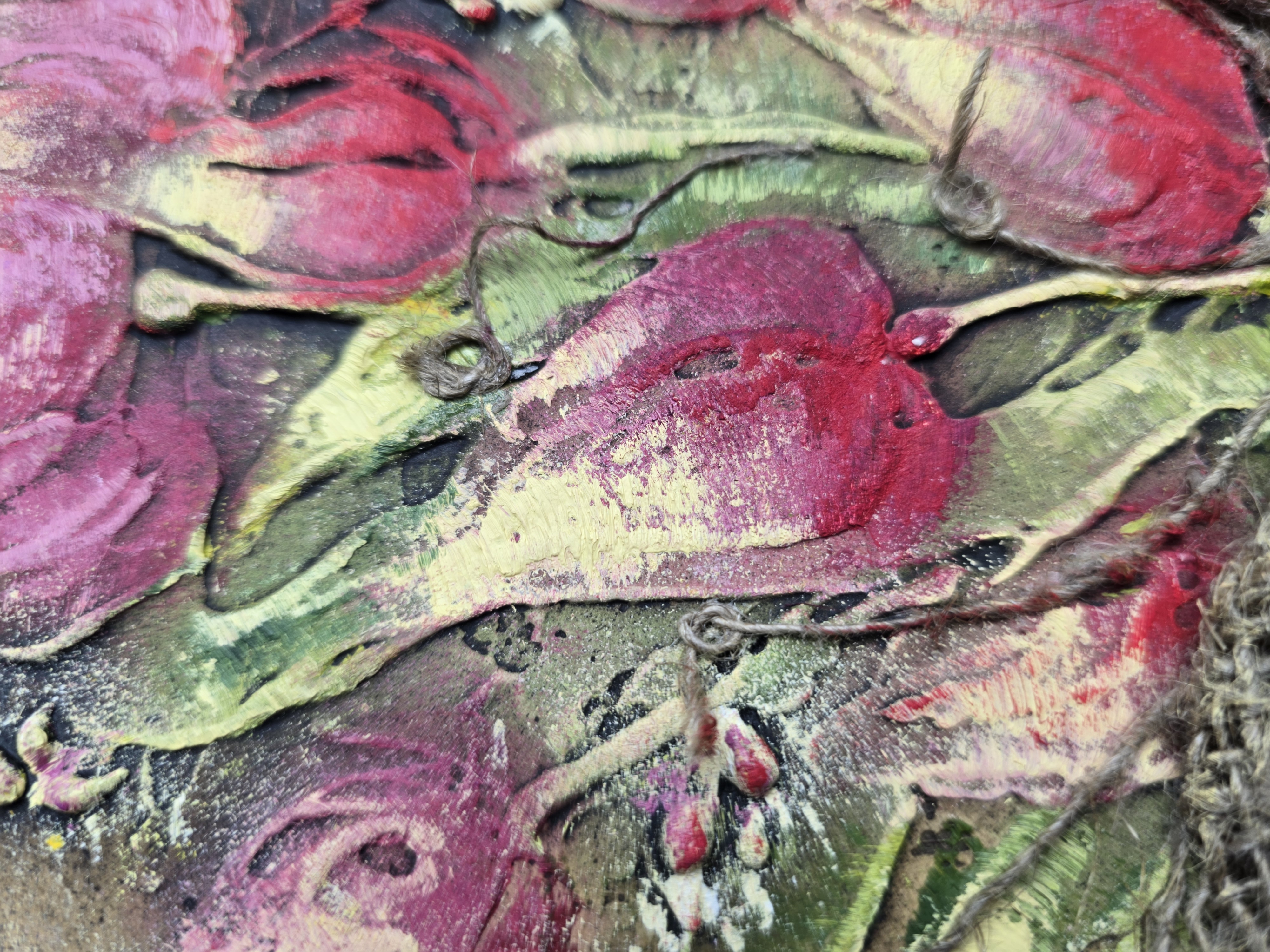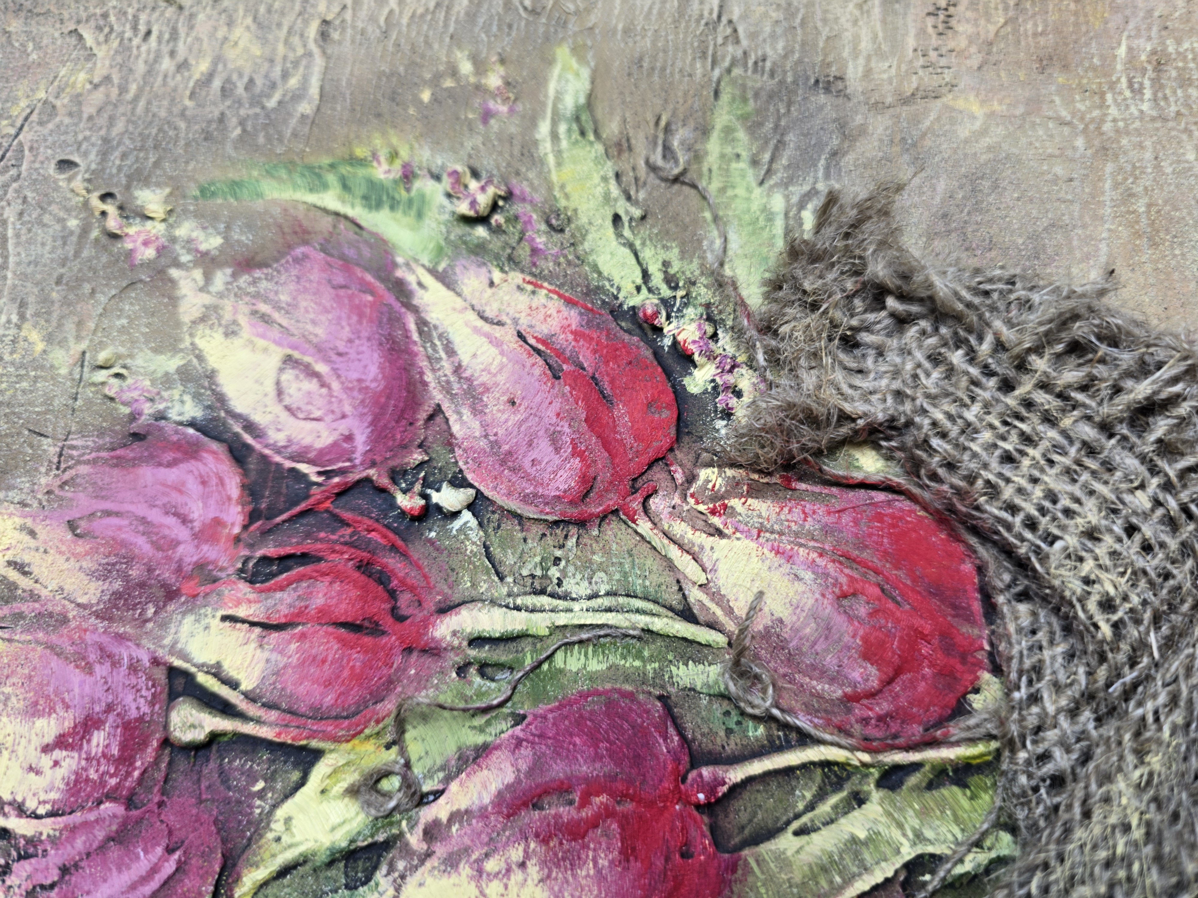 ✨Technique: Textured paste & oil with decorative burlap