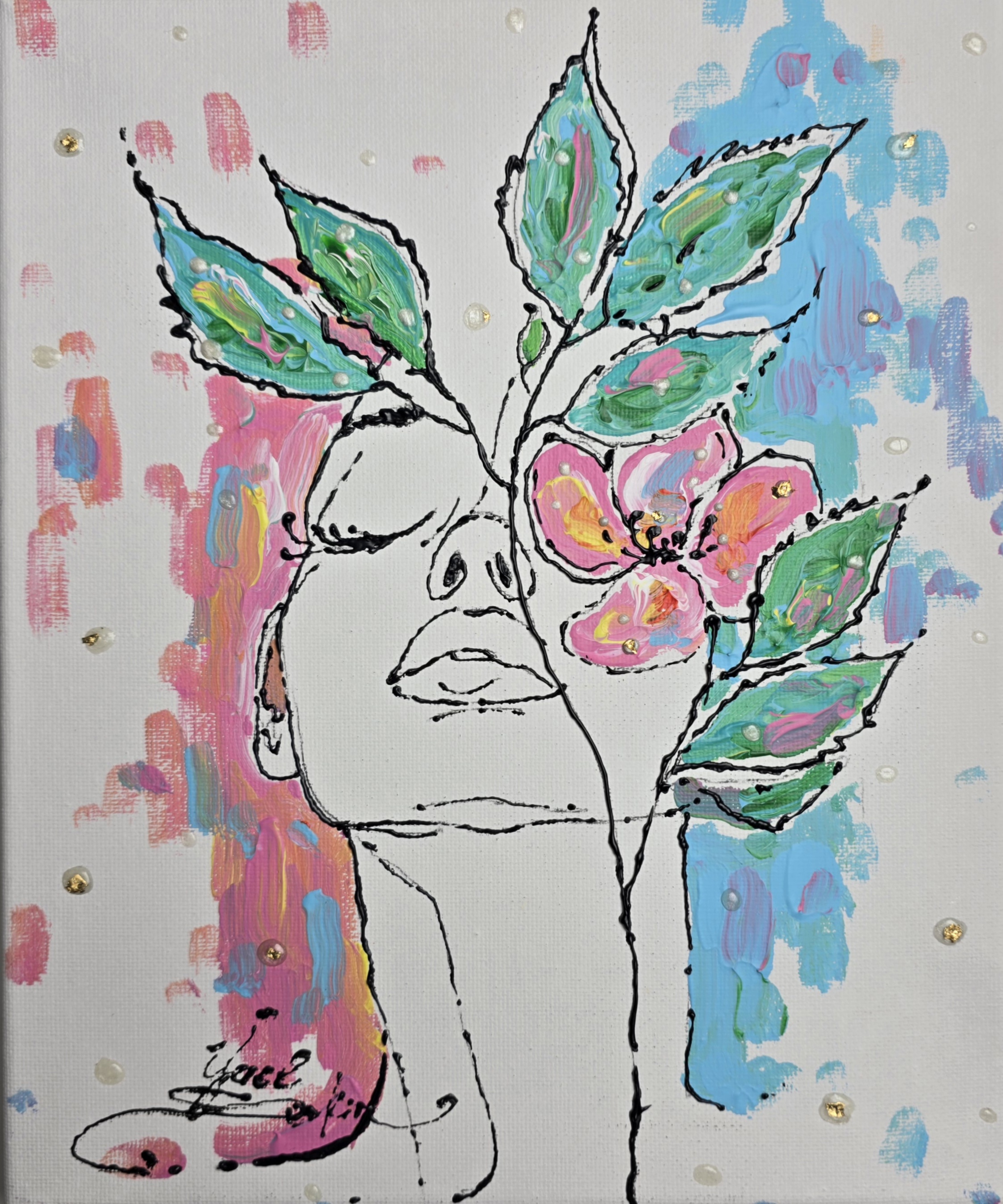 Floral Woman Acrylic Painting, Original Modern Portrait Wall Art on Canvas