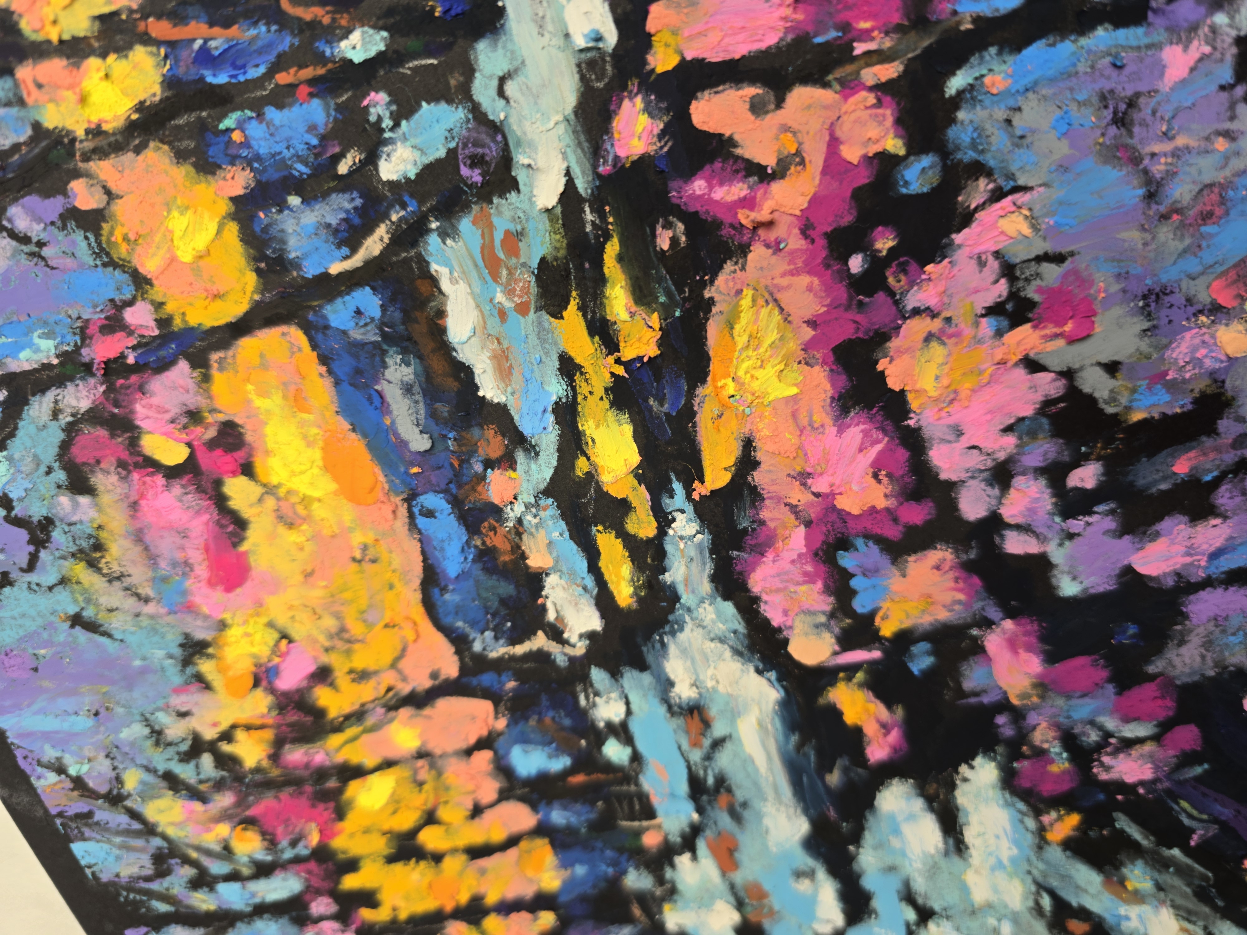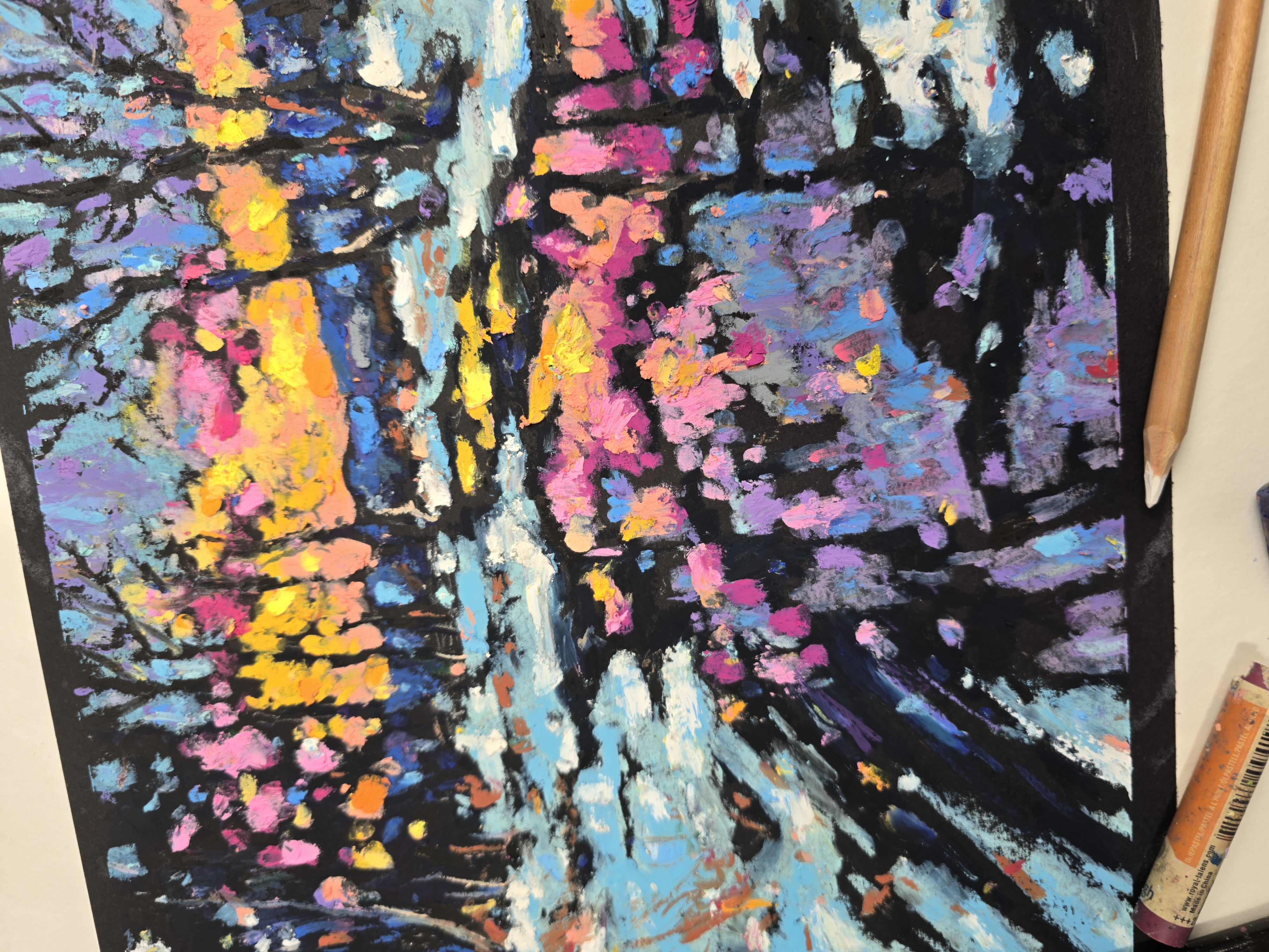 🖌️This artwork is perfect for collectors and admirers of winter landscapes, sunset paintings, and original oil pastel art. It brings color, warmth, and energy to any interior.